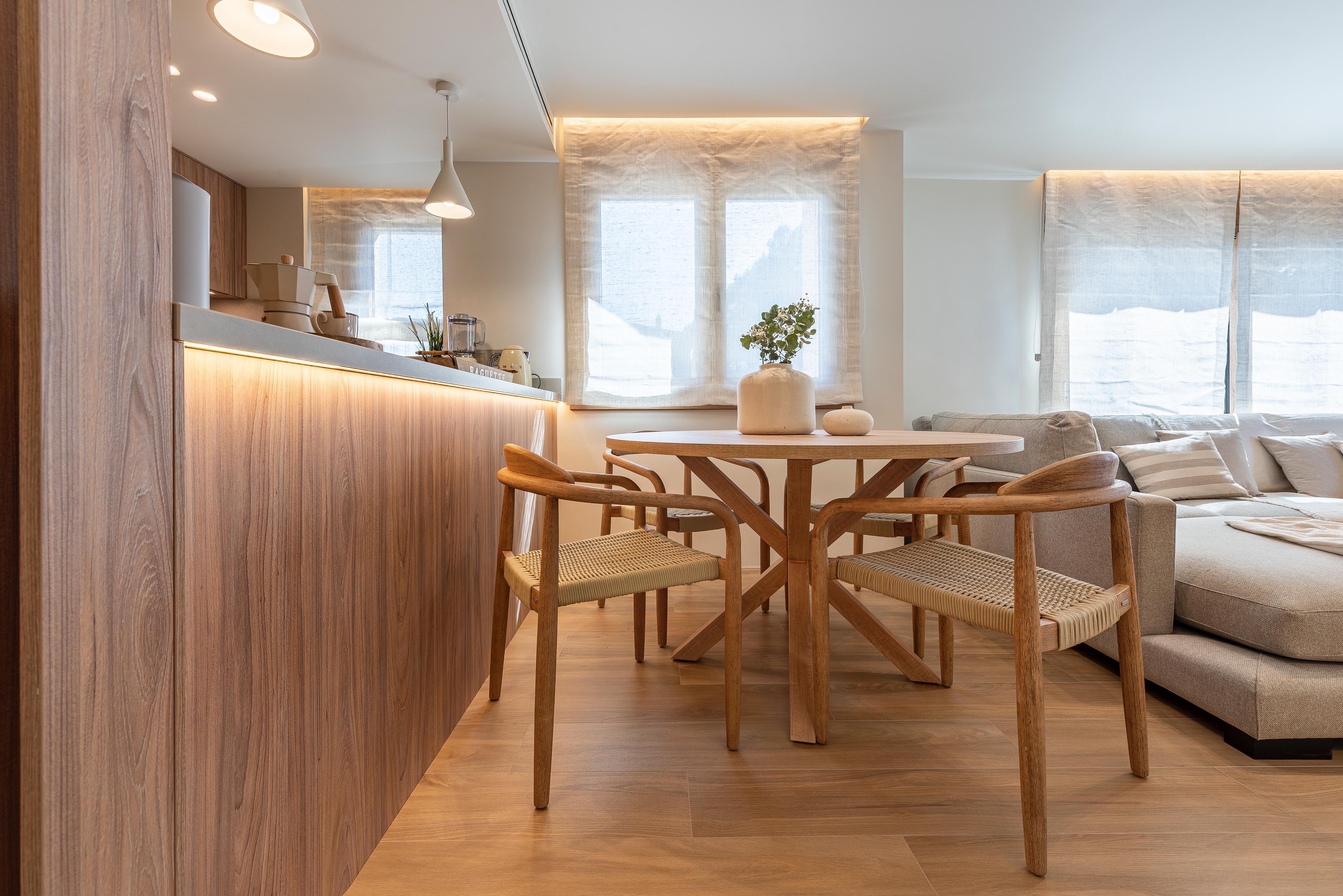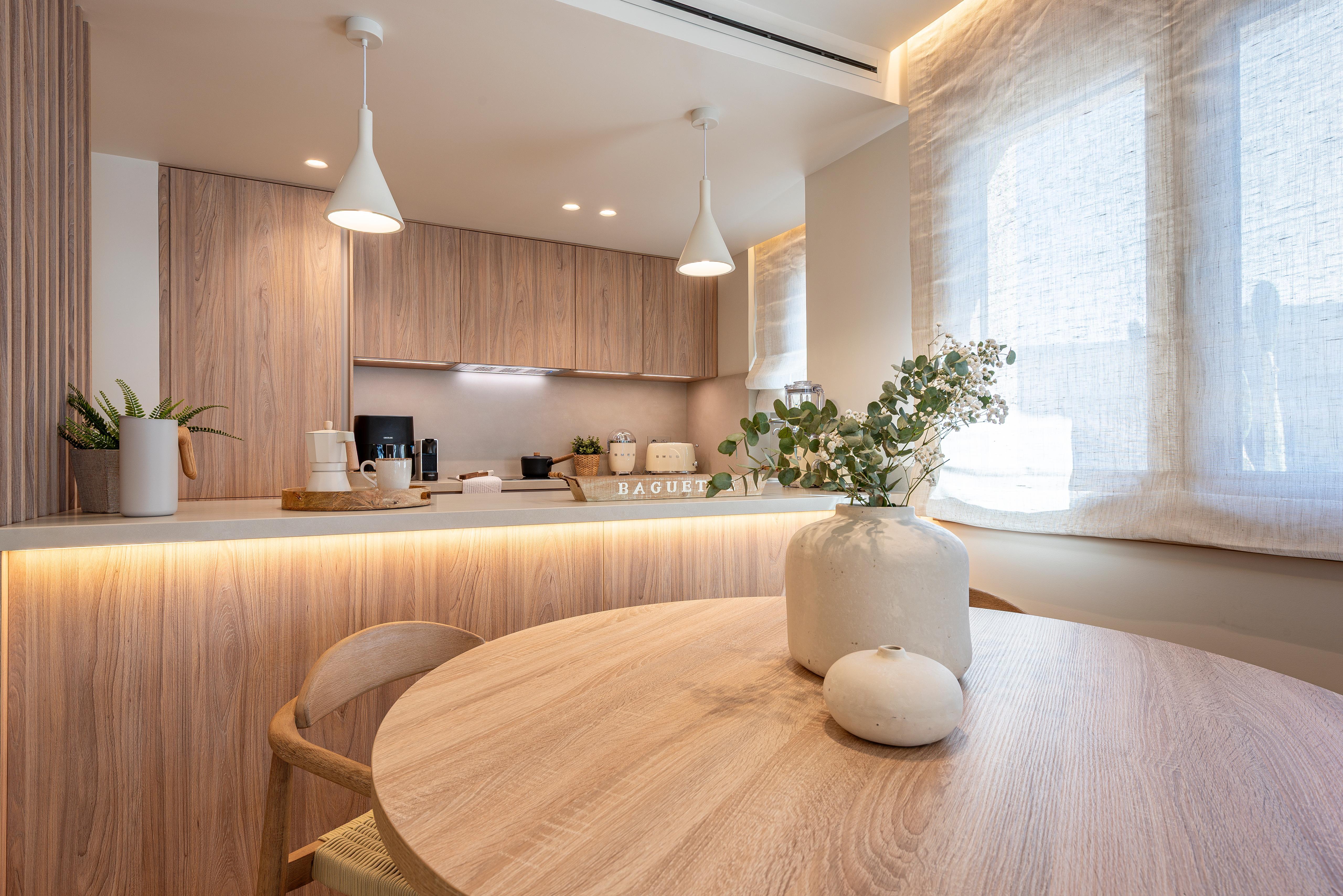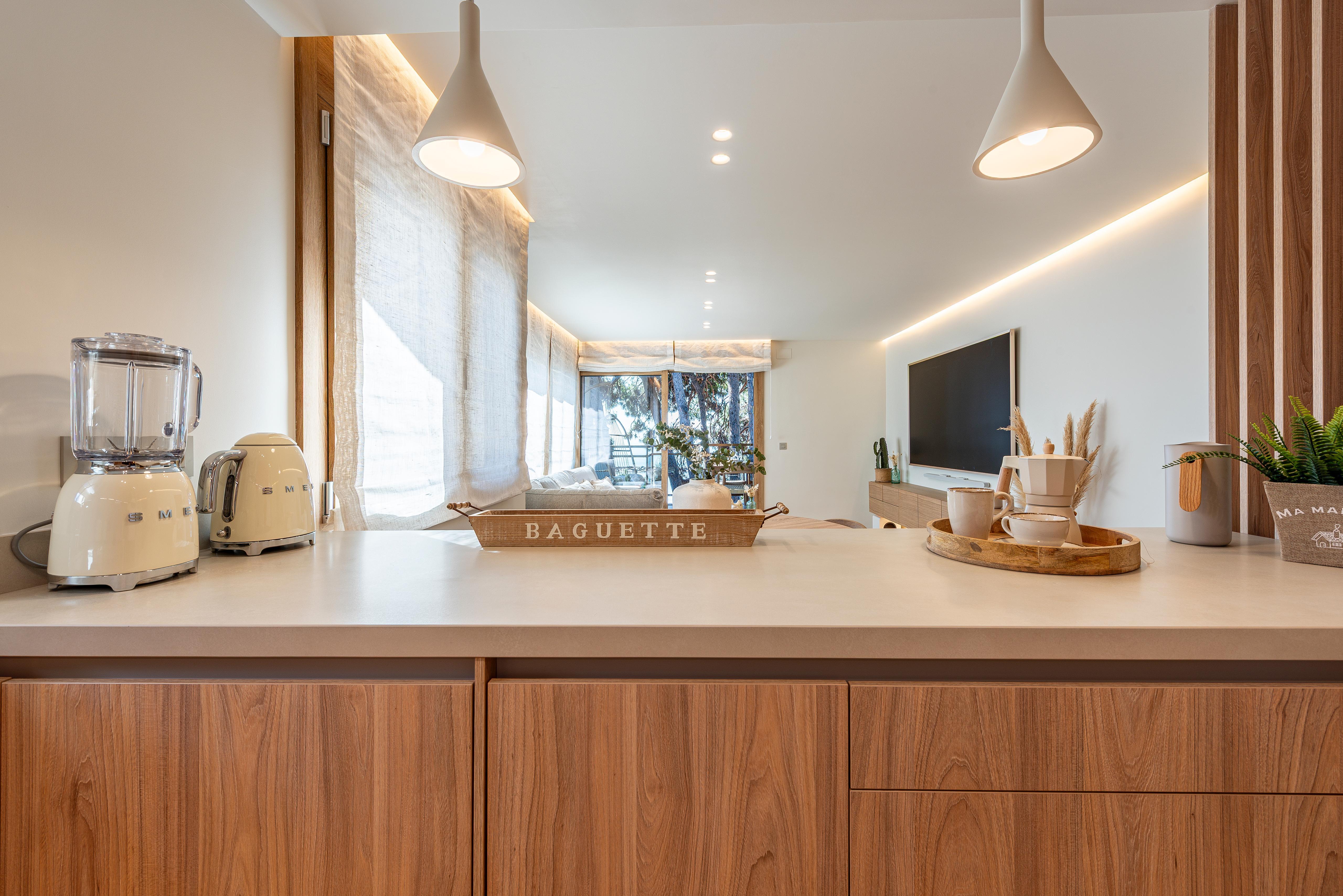 Reforma integral de piso en Cambrils (Tarragona) interviniendo en la cocina. El proyecto combina estética cálida funcional.