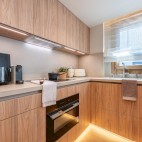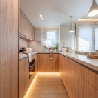 Cocina compacta con zona de lavanderia incluida. Todo integrado y panelado para una estética visible desde el salón.