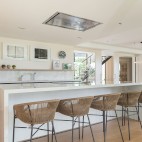 Cocina: Mobiliario Santos. Cocina en línea, con isla y columnas